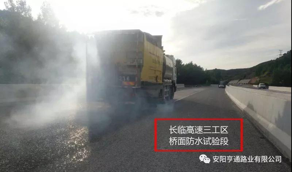 此次橋面防水試驗(yàn)段獲得了項(xiàng)目、監(jiān)理和指揮部的一致認(rèn)可,為我公司在長臨高速的防水施工奠定了一個(gè)良好的基礎(chǔ),也為亨通路業(yè)2018年的工程又傳來了一份捷報(bào)。